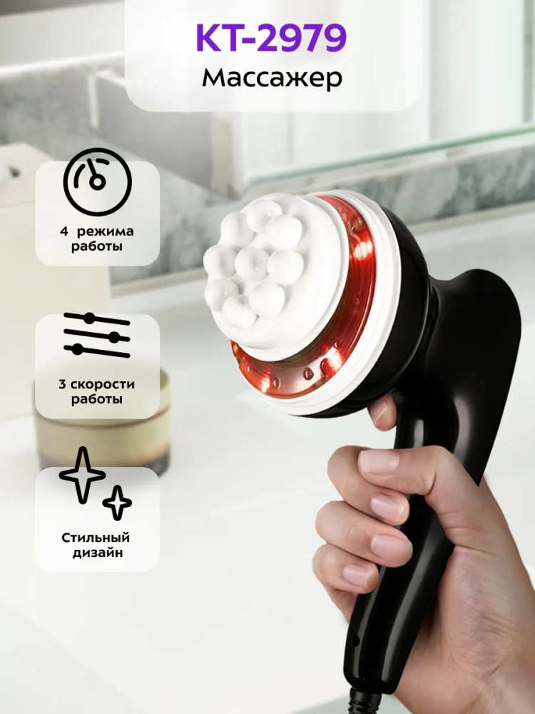 Модель КТ-2979 имеет удобную форму и ручку, что способствует комфортному проведению самомассажа. Массажер может использоваться спортсменами перед, во время и после тренировок, поможет расслабить мышцы спины и шеи офисным работникам.