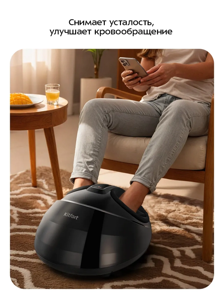 Массажер для ног Kitfort KT-5911 выполнит массаж ваших ног и избавит их от усталости. Прибор сочетает в себе воздушно-компрессионный и роликовый массаж, а также нагрев. Управление осуществляется с помощью кнопок на панели управления. Есть возможность установить время работы массажера от 5 до 30 минут с шагом 5 минут. После сеанса сработает автоотключение.