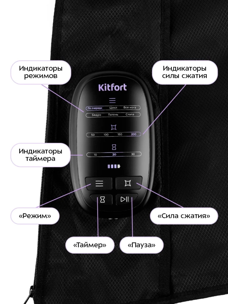 Массажер Kitfort КТ-5947 поможет снять усталость, уменьшить отеки и расслабить мышцы ног с помощью воздушно-компрессионного массажа (прессотерапии).