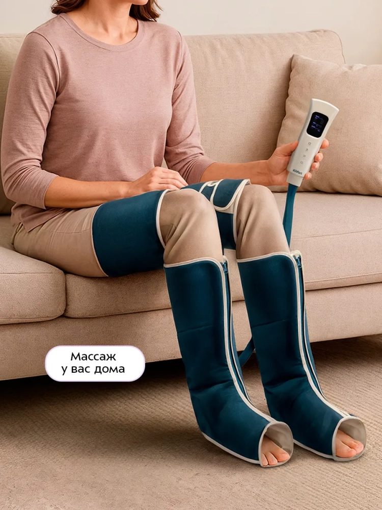 Массажер Kitfort КТ-5948 поможет снять усталость, уменьшить отеки и расслабить мышцы ног с помощью воздушно-компрессионного массажа (прессотерапии).