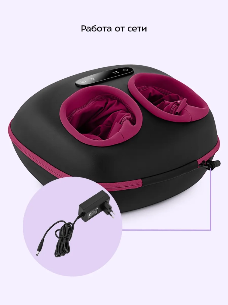 Чехлы для ног съемные, что упрощает чистку массажера.