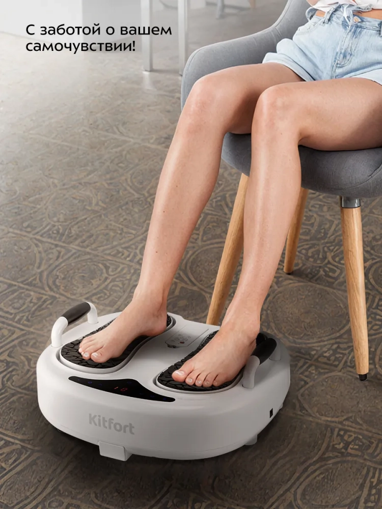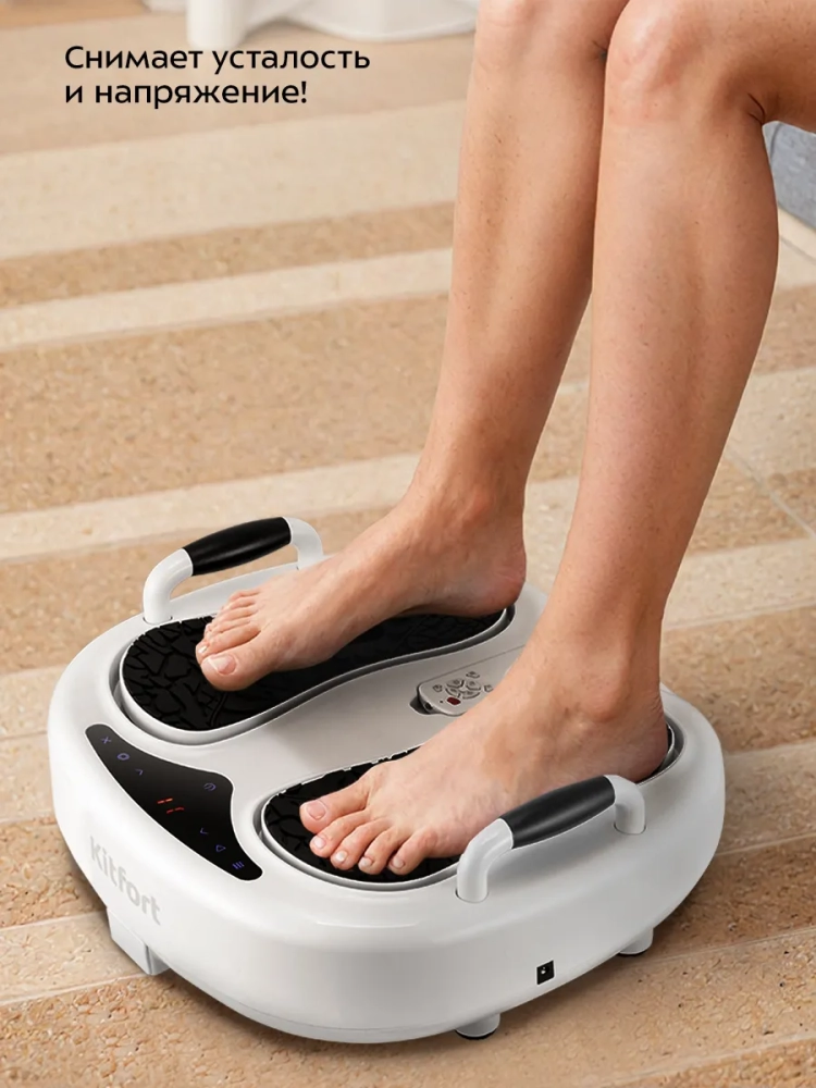 Массажер для ног Kitfort KT-2973 выполнит массаж ваших ног и избавит их от усталости. Устройство выполняет 2 вида массажа: вибрационный и вибрационно-роликовый. Управление осуществляется с помощью кнопок на панели управления или с помощью пульта дистанционного управления (ДУ).
