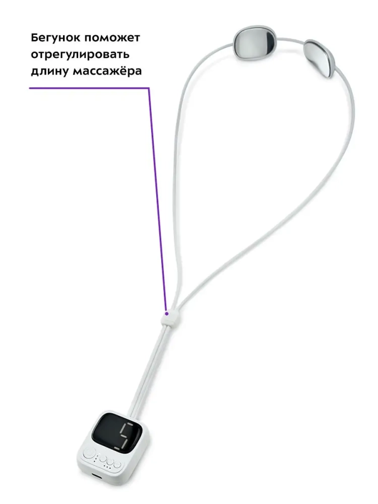 У массажера 4 режима работы: смешанный режим, классический массаж, массаж похлопываниями и массаж гуаша. В каждом режиме вы можете настроить интенсивность воздействия от слабой (1) до сильной (15). При переключении режимов интенсивность устанавливается 0, и массажер не работает. Затем вы включаете массажер, установив интенсивность 1, и можете плавно увеличивать интенсивность. Также в каждом режиме вы можете отключить или включить нагрев и выбрать уровень нагрева от 1 до 3. Благодаря большому количеству настроек вы точно подберете массаж, который подходит вам лучше всего. А бегунок поможет отрегулировать длину массажера под ваш размер шеи, чтобы электроды плотно прилегали к ней.