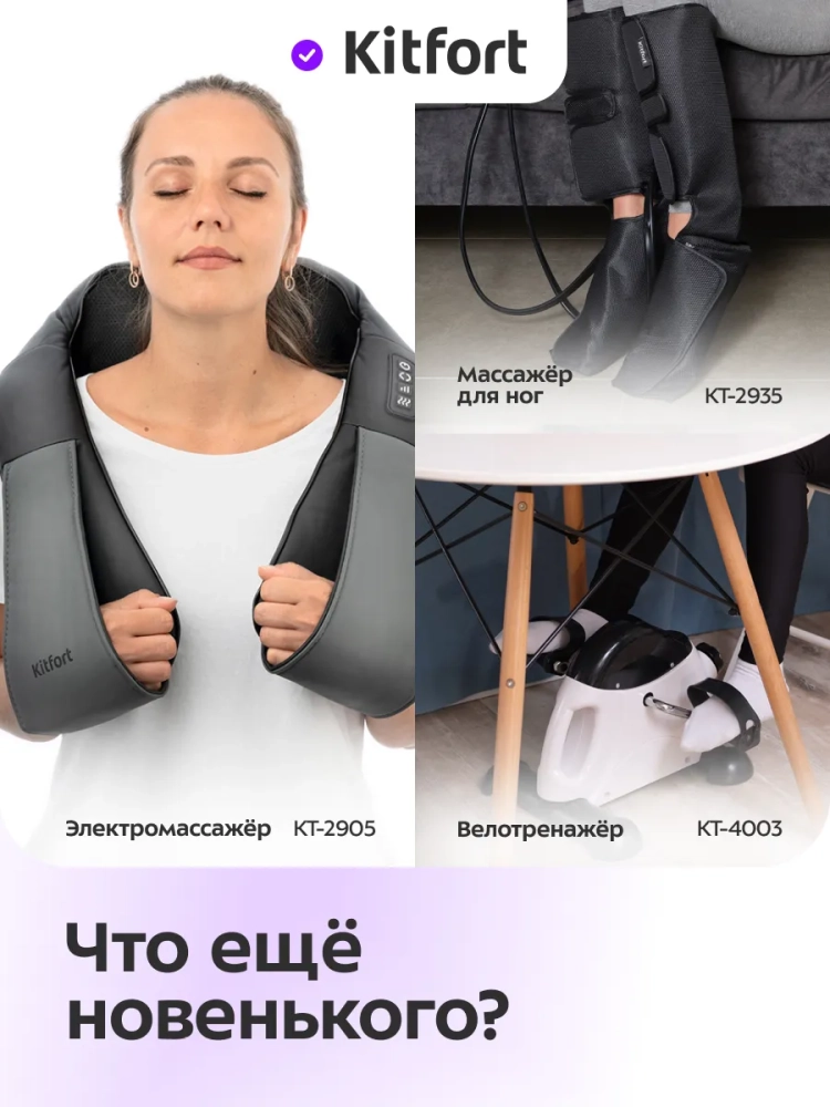 Массажер для шеи Kitfort КТ-2998 выполняет массаж, помогая избавиться от дискомфорта в шейно-воротниковой зоне, который может возникнуть после долгого сидения за компьютером, неудобной позы во время сна или при сидячем образе жизни. Воздействуя на шею, позвоночник и плечи массажными роликами, массажер устраняет стресс и затекание мышц.