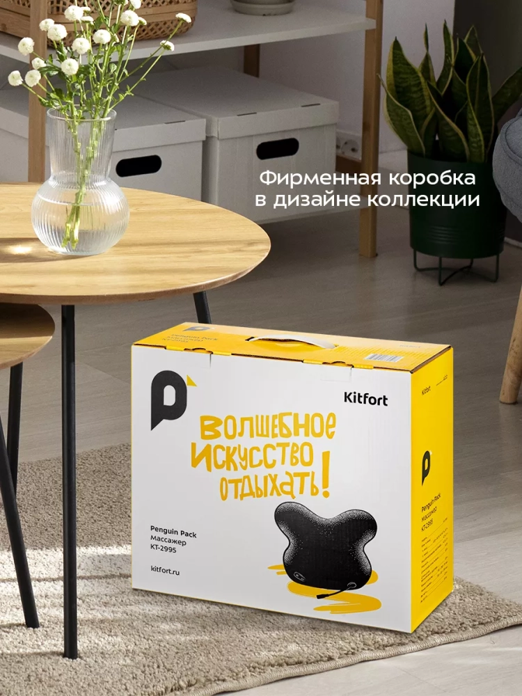 Массажер Kitfort KT-2995 выполняет массаж, помогая избавиться от дискомфорта в шейно-воротниковой зоне, который может возникнуть после долгого сидения за компьютером, неудобной позы во время сна или при сидячем образе жизни. Воздействуя на шею, позвоночник и плечи массажными роликами, массажер устраняет стресс и затекание мышц. Также устройство можно использовать для массажа поясницы, лопаток, бедер и голеней.