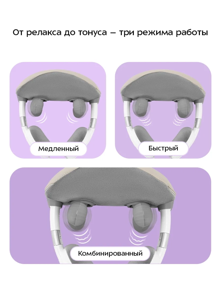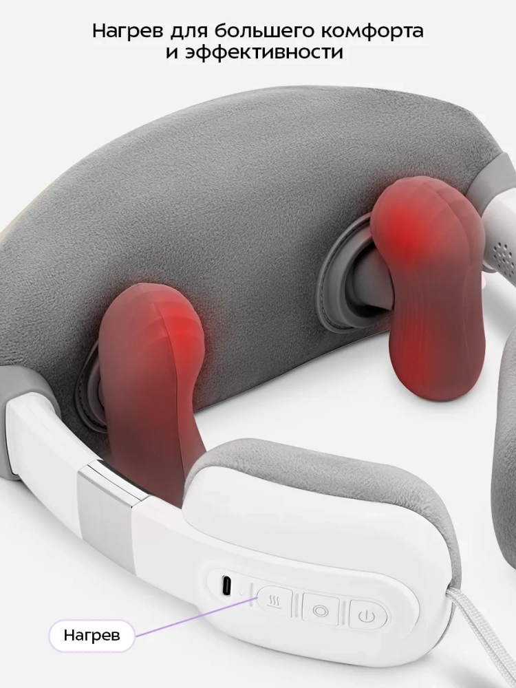 В устройстве предусмотрено три режима массажа: медленный, быстрый и комбинированный. Можно выбрать сильный или слабый нагрев или выключить его. Благодаря этому вы подберете массаж, который подходит вам лучше всего. На массажере предусмотрены петли, за которые его удобно держать.