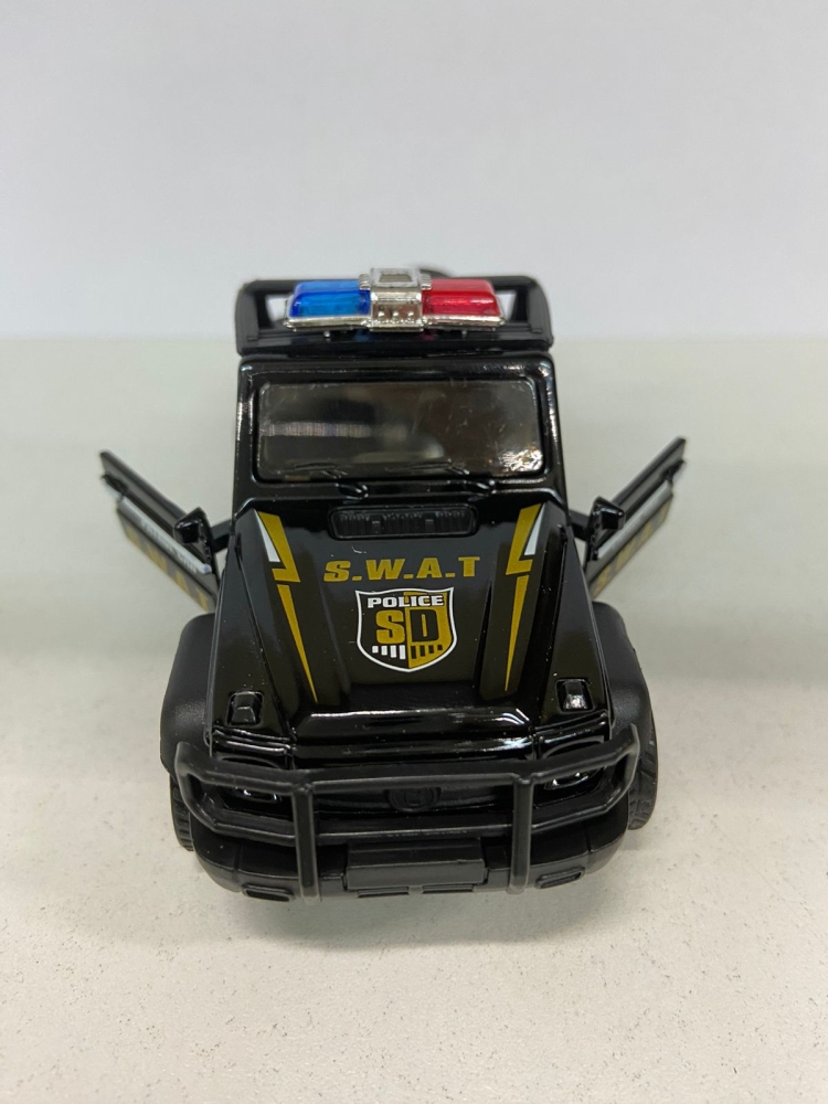 Корпус выполнен из прочного металла с качественным лакокрасочным покрытием, а днище и интерьер — из высококачественного ABS-пластика. Особый восторг у детей вызывает возможность открывать двери, что добавляет игре реалистичности.