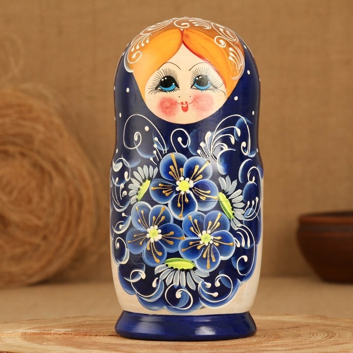 Матрёшка "Клава", голубое платье, 5-кукольная, 12 см