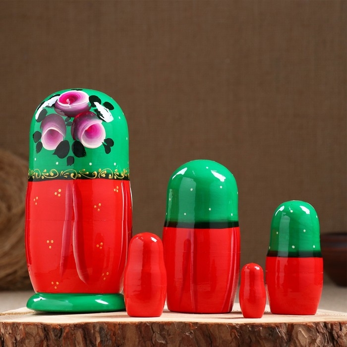 Матрешка "Зеленый платок с сарафаном" 18см, 5 кукольная, ручная роспись