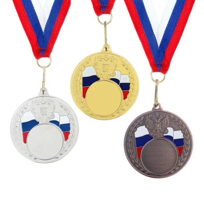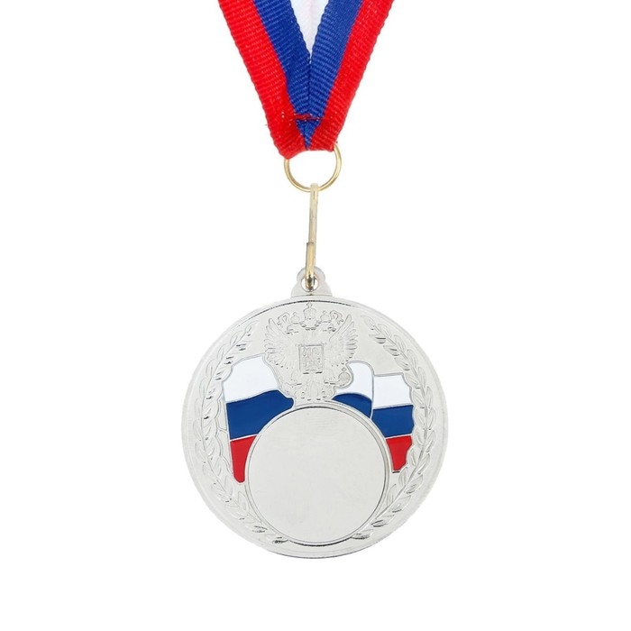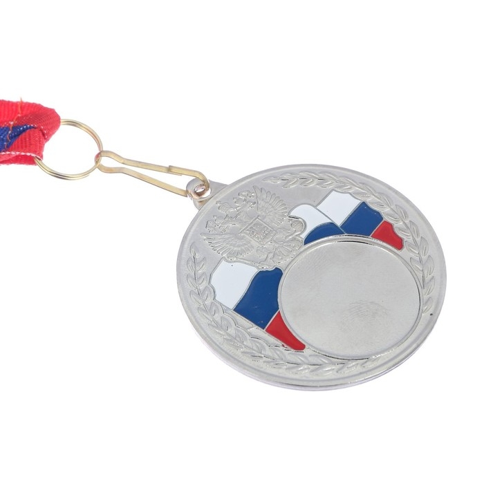 Медаль под нанесение 067, d= 5 см., триколор. Цвет серебро. С лентой