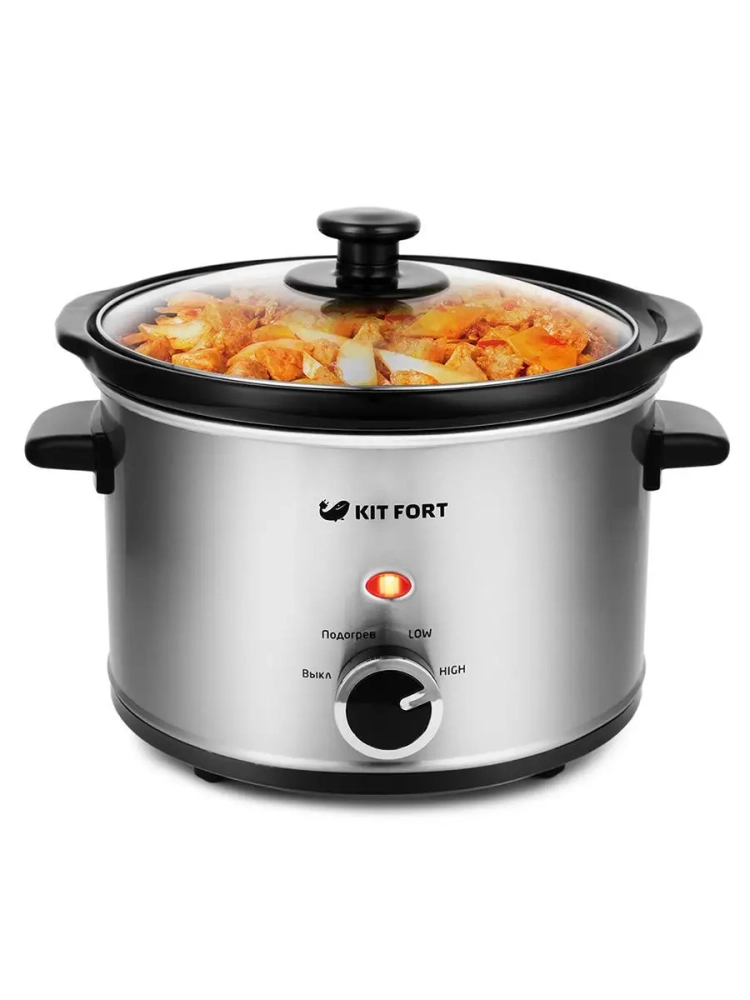 Медленноварка Kitfort КТ-206 — это простой в пользовании кухонный прибор с большим диапазоном применения. Она состоит из двойного корпуса, внутри которого по периметру расположены нагреватели, и керамической кастрюли с крышкой.
