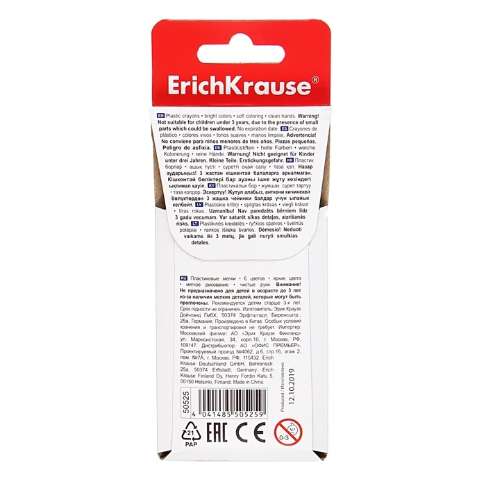 Пластиковые мелки ErichKrause® с круглым корпусом диаметром 7 мм, предварительно заточен, устойчив к поломкам. Рисунки со временем не теряют яркости, благодаря компонентам, отвечающим за УФ защиту. Европейский сертификат качества (СЕ) гарантирует отсутствие в составе токсичных веществ.