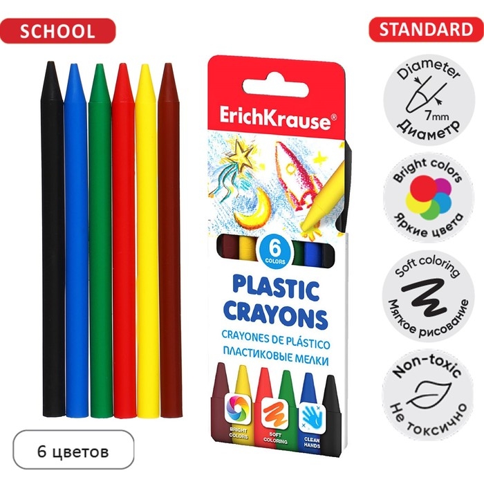 Мелки пластиковые 6 цветов ErichKrause, диаметр 7 мм, заточенные