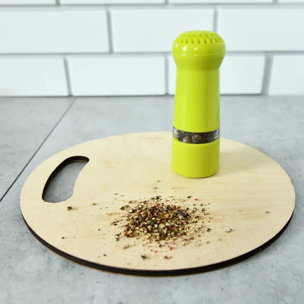 Для перемалывания перца и других специй очень удобно пользоваться мельницей. Инструмент удобен в использовании, позволяет насыпать приправы прямо в блюдо или в тарелку. Высота изделия 13 см, диаметр 4,5 см, оно идеально располагается в руке. Чтобы измельчить порцию специй, переверните приспособление вниз отверстиями и проверните основание несколько раз по часовой стрелке. Преимущества изделия в том, что оно позволяет аккуратно насыпать приправы в тарелку, пространство вокруг остается чистым, а свежемолотый перец более ароматный, чем уже готовая приправа в пакетике. Приспособление занимает мало места, легко моется и смотрится стильно на любой кухне. Мельница для перца - это хороший подарок и функциональный инструмент для любого повара! Изготовлено: рабочая часть из керамических материалов, нержавеющей стали, корпус из пластмассы (полипропилен, полистрирол).