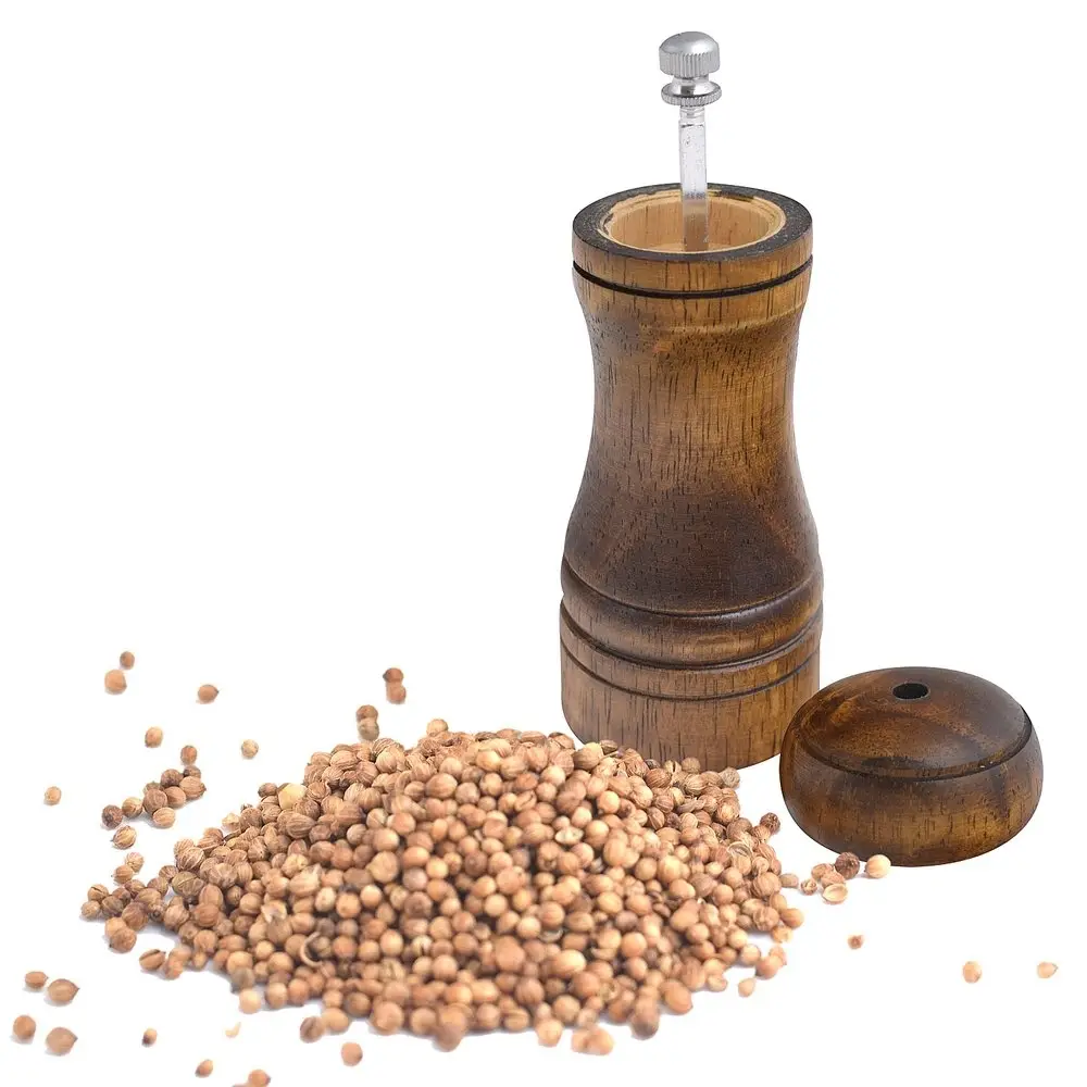 Мельница для специй — удобное приспособление для перемалывания перца, крупной соли и для приготовления приправ. Вы можете самостоятельно смешивать разные приправы и получать ароматные добавки, улучшающие вкус ваших блюд. Открутите крышку в верхней части мельницы, засыпьте специи внутрь и закрутите крышку обратно при помощи декоративной шайбы. Чтобы измельчить порцию специй, начните вращать верхнюю часть мельницы по часовой стрелке. Этот кухонный аксессуар представлен в классическом дизайне, станет не просто полезным приспособлением и отличным подарком, но и украшением интерьера кухонного пространства.