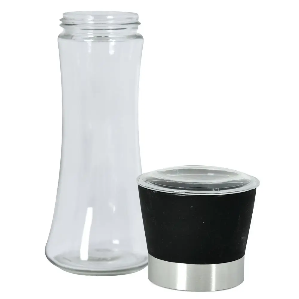 Изготовлено: банка из стекла, рабочая часть (жернова) из керамики, крышка из коррозионностойкой (нержавеющей) стали, пластмассы. Размер: диаметр 6,5 см, высота 18 см. Объем 200 мл.
