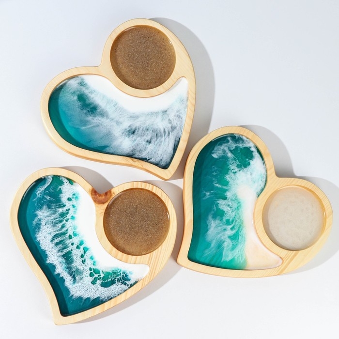 Менажница авторская с эпоксидной пищевой смолой Adelica, 21×22 см, цельный кедр, рисунок МИКС