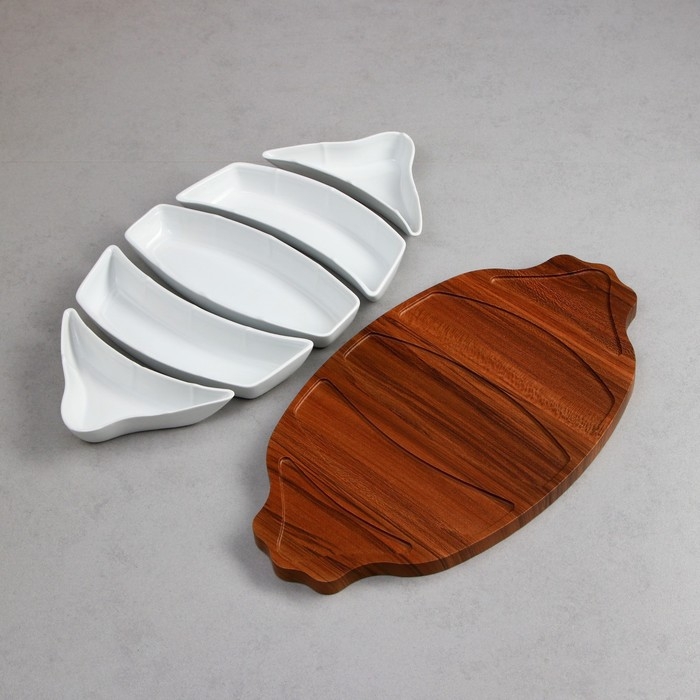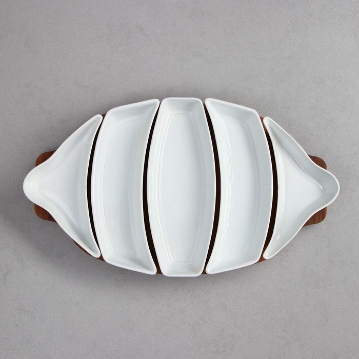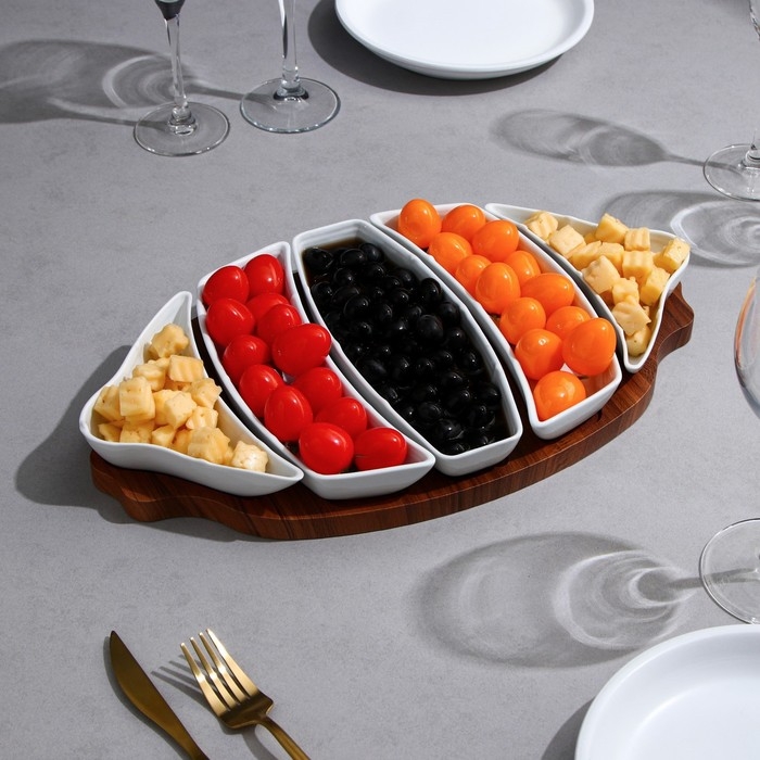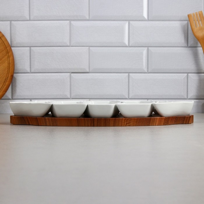 Менажница, деревянное основание, 2 шт: 150 мл, 2 шт: 200 мл, 1 шт: 250 мл, фарфор, Иран