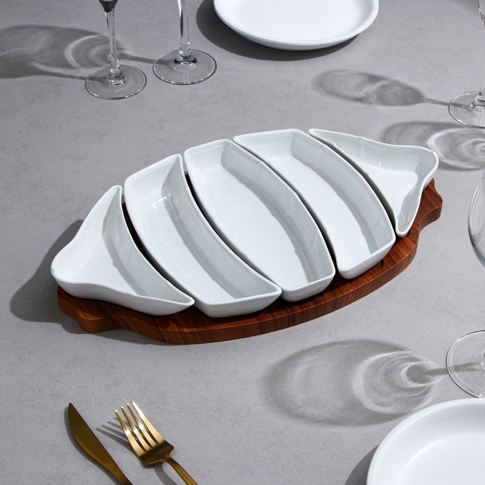 Менажница 4 ячейки «Марбл», 20×3,2 см, цвет белый
