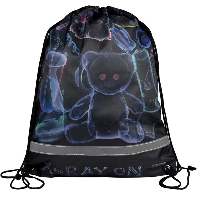 Мешок для сменной обуви. РЕНТГЕН. Размер: 36х48 см. Материал: полиэстер. Количество отделений - 1. Застёжка - шнурок. Отделка: сублимационная печать. Особенности: светоотражающая лента. Подклада: нет. Пол: универсальный. Индивидуальная упаковка: ПЭТ-пакет.