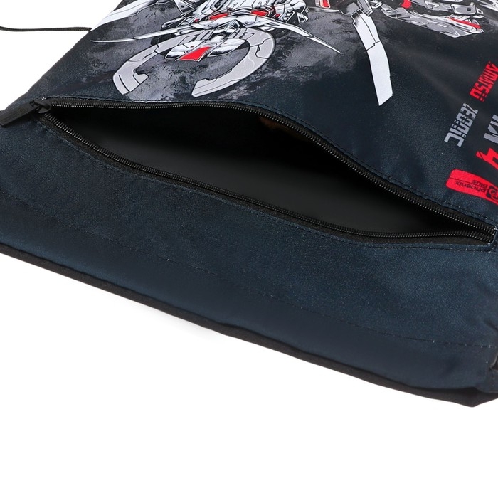 Мешок для сменной обуви. РОБОТЫ. Размер: 36x48 см. Материал: полиэстер. Количество отделений - 1. Количество наружных карманов - 1. Застёжка - шнурок. Отделка: сублимационная печать. Особенности: карман на молнии, ручка-петля, светоотражающие элементы. Подклада: нет. Пол: для мальчиков. Индивидуальная упаковка: ПЭТ-пакет.