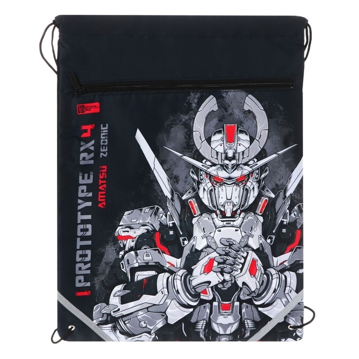 Мешок для обуви с карманом 480 х 360 мм, Феникс, светоотражающая полоса, с ручкой "Роботы"