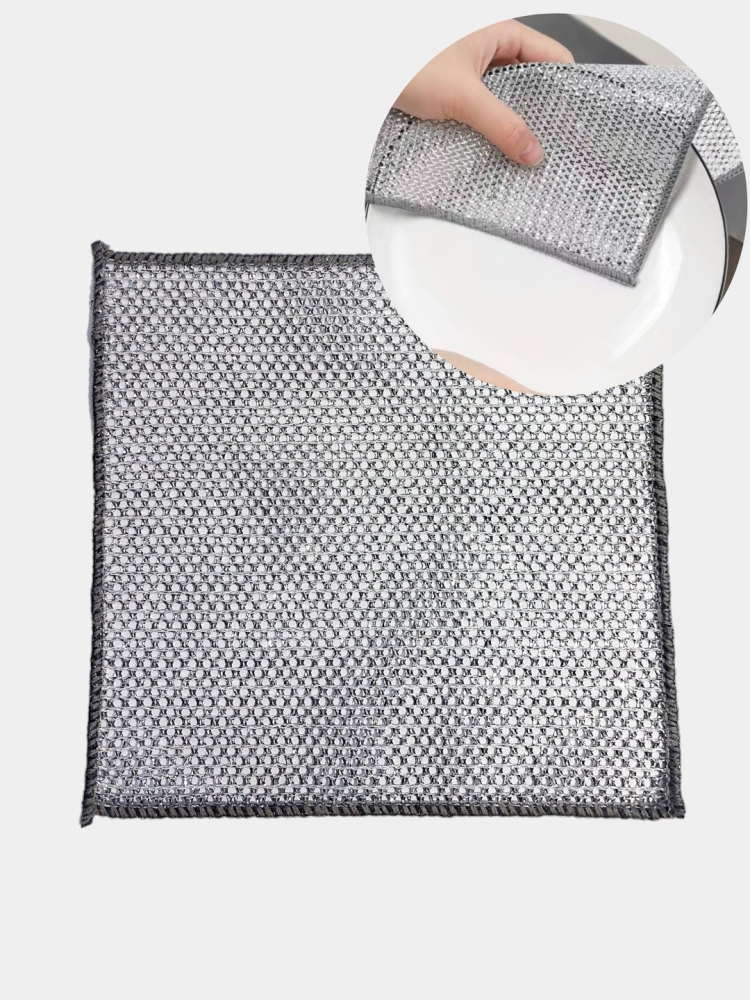 Универсальная узелковая сетка салфетка для уборки и мытья - ваш незаменимый помощник в домашних делах! Тряпка из металлической проволоки это находки для кухни салфетки для уборки кухни. Не потеряют своих свойств даже после многоразового использования Металлизированная тряпка с люрексом, не оставляет царапин, поэтому ее можно использовать для очистки различных поверхностей, включая стекла, зеркала, кухонную плиту, для казана, мебель и многое другое, а так же подойдет для чистки утюга и даже чистки картошки. При использовании моющих средств она хорошо пенится Эта железная тряпочка из люрекса для уборки однозначно можно использовать как салфетку для чистки посуды. Может устранить маслянистые загрязнения так же как и губка. Тряпочки для кухни безворсовые и не пускают ворс. Металлические волокна узелковой ткани обеспечивают жесткий абразивный эффект, который подходит для чистки жила и жировых отложений на кухонной утвари и варочных поверхностях/