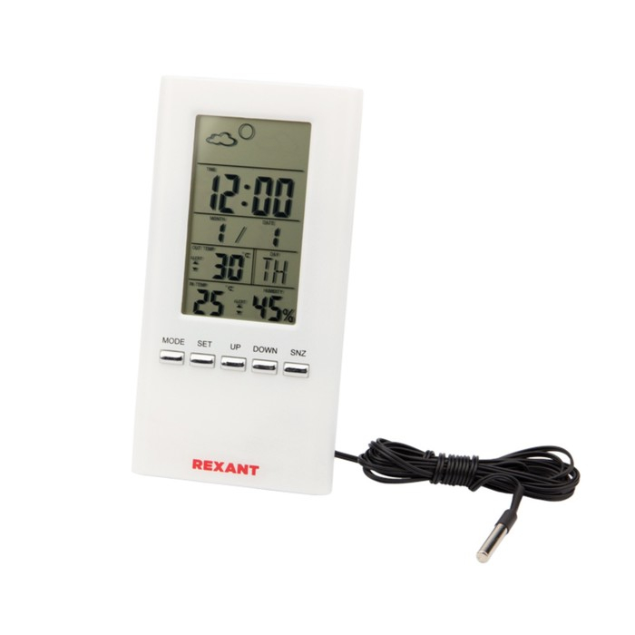 Метеостанция REXANT S3331SC, комнатно-уличная, выносной датчик, белая