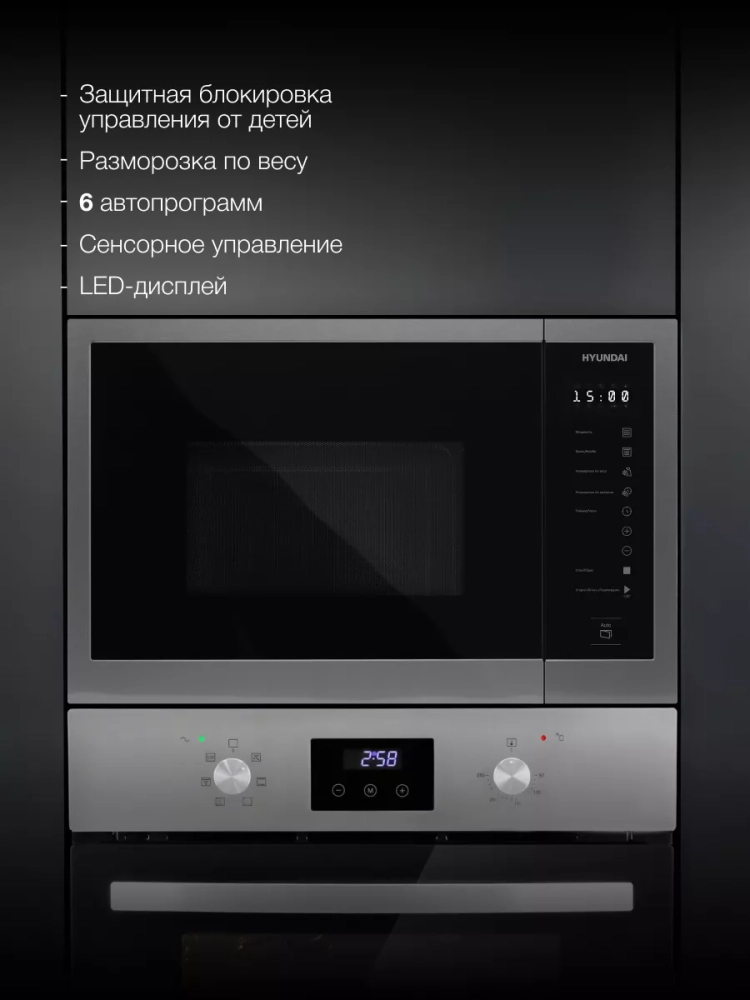 Встраиваемая микроволновая печь Hyundai HBW 2560 IX станет верным помощником на кухне благодаря своему широкому функционалу. Она отлично подойдет для приготовления небольших порций блюд и быстрого разогрева уже имеющихся прямо в тарелке.