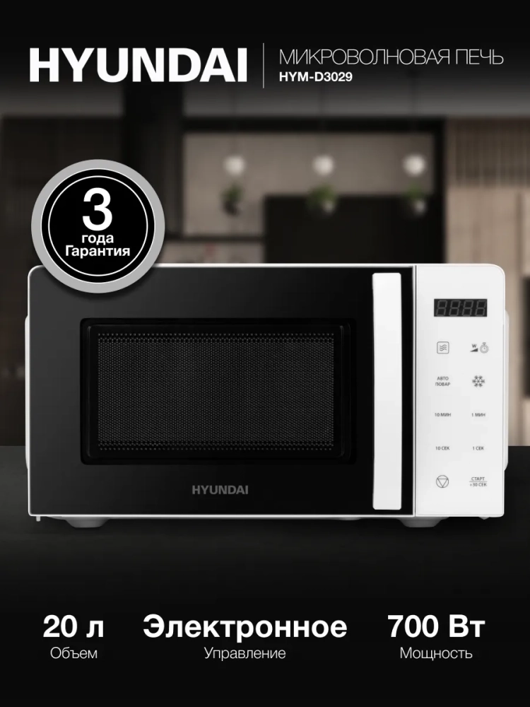 Hyundai HYM-D3029 – это мощная микроволновая печь с тач-панелью и ярким ЖК-дисплеем.