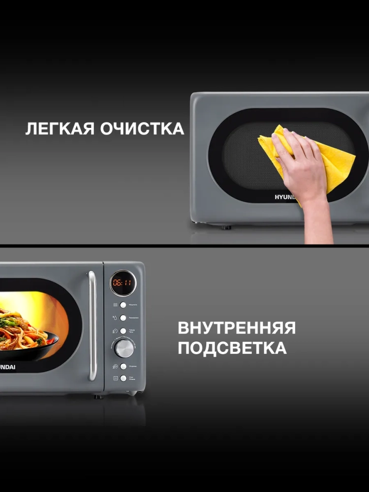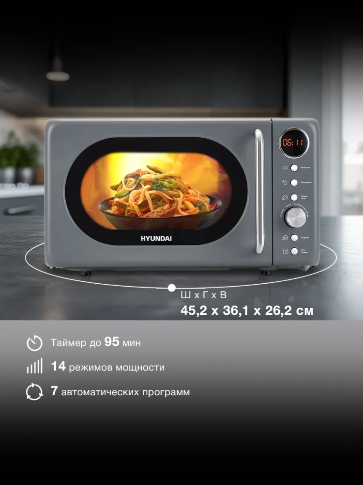 Микроволновая печь (СВЧ) Hyundai HYM-D3036 серый/серебристый, мощность 700Вт, объем 20л, электронное управление.