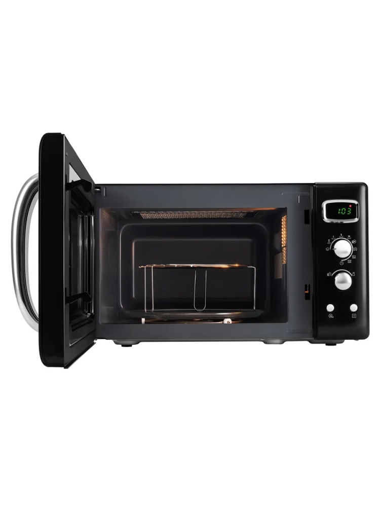 Вместительная камера объемом 23 литра позволяет с легкостью разогревать, готовить и запекать блюда для всей семьи. Мощность 800 Вт обеспечивает быстрый и равномерный разогрев, а встроенный гриль открывает новые возможности для приготовления, позволяя подрумянивать продукты до аппетитной корочки.