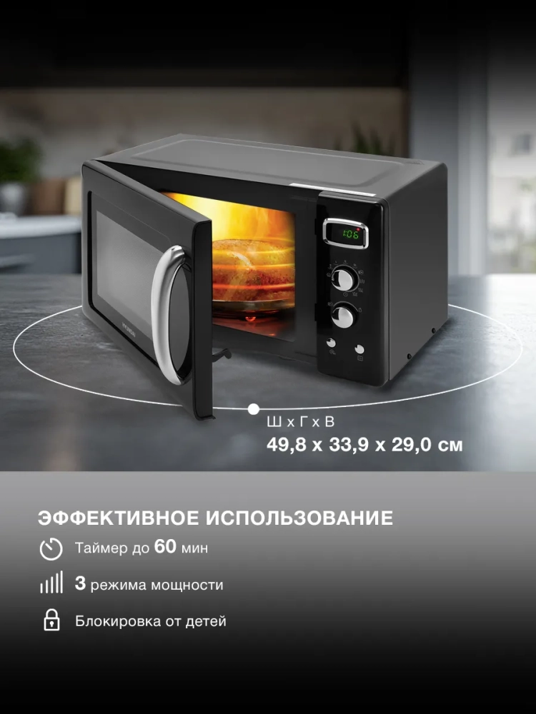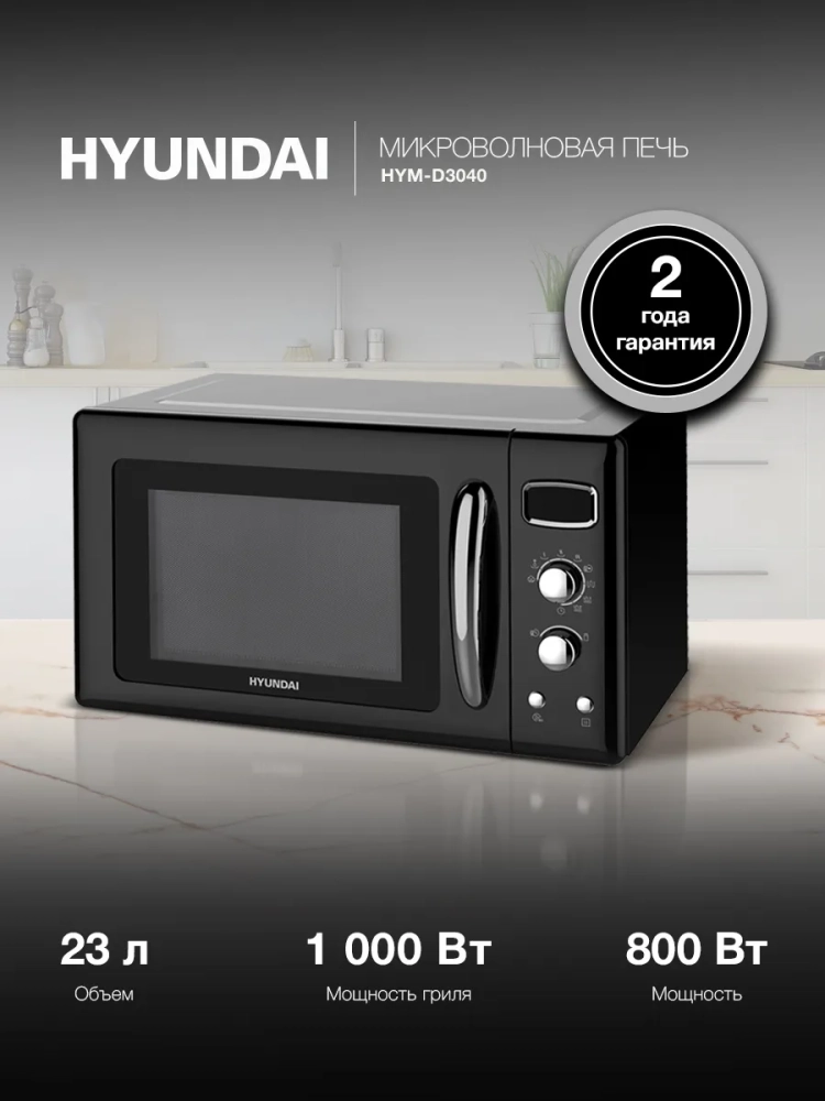 HYUNDAI HYM-D3040 – это идеальный выбор для тех, кто ценит не только скорость, но и вкус. Будь то разогрев утреннего кофе, приготовление сложного блюда с хрустящей корочкой или быстрая разморозка, эта модель справится с любой задачей. На устройство предоставляется расширенная гарантия 24 месяца.