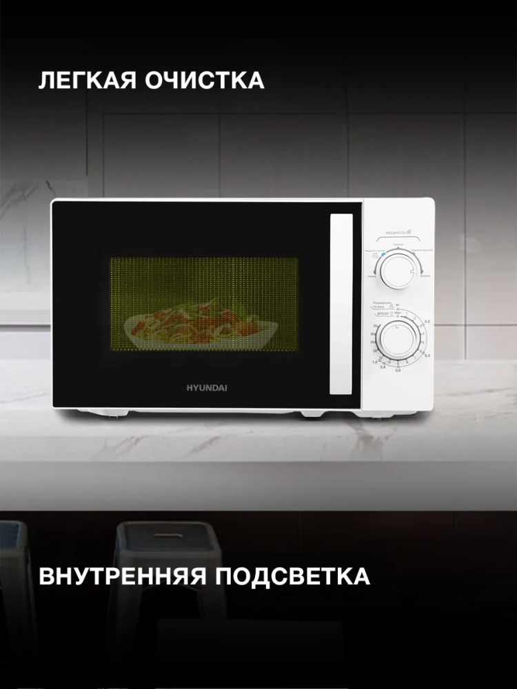 Микроволновая печь (СВЧ) Hyundai HYM-M2067 белый, мощность 700Вт, объем 20л, механическое управление