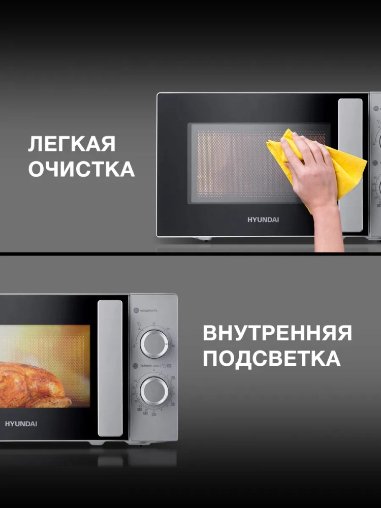 Микроволновая печь (СВЧ) Hyundai HYM-M2092 серебристый, мощность 700Вт, объем 20л, механическое управление.