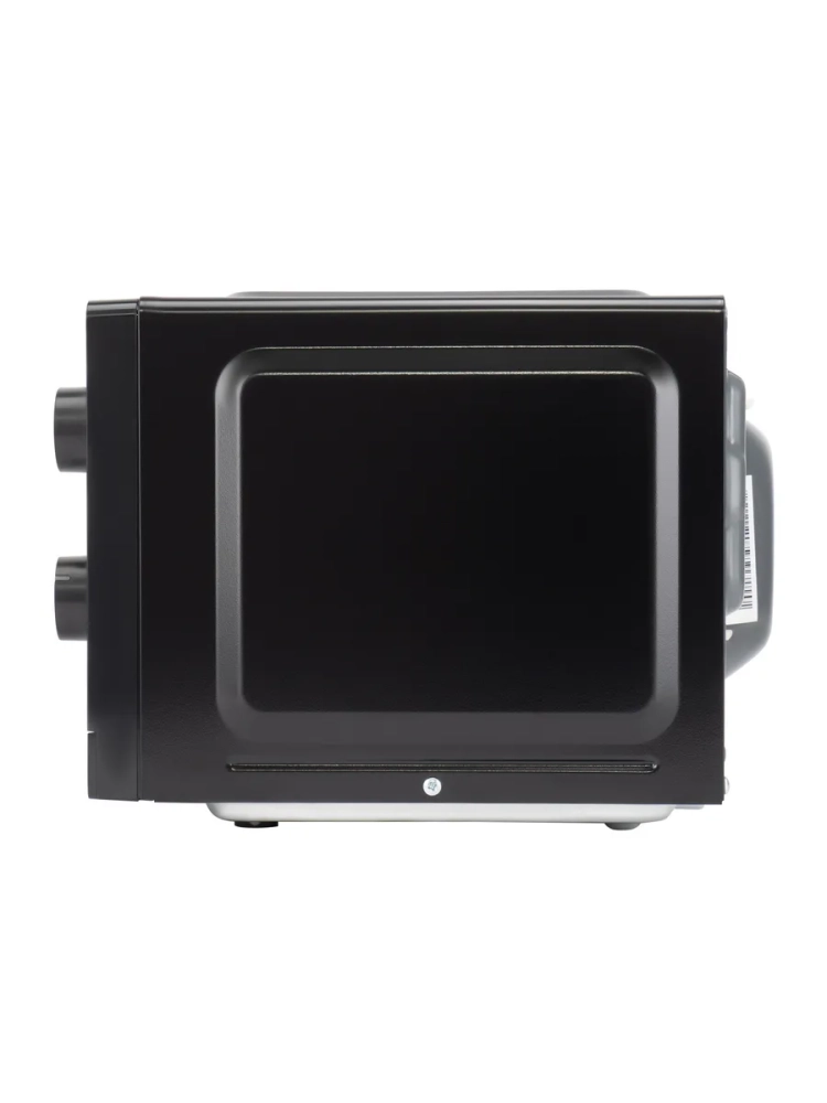 Управление осуществляется с помощью двух поворотных механических регуляторов, что делает использование печи простым и понятным. Один переключатель отвечает за выбор режима работы, второй — за установку времени приготовления. Такое решение удобно для тех, кто предпочитает классическое и интуитивное управление без сложных меню.