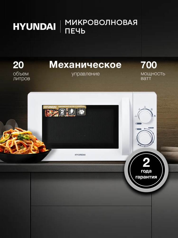 Микроволновая печь Hyundai HYM-M2059 — это надежный помощник на вашей кухне, который быстро и равномерно разогреет ваши блюда. Модель HYM-M2059 имеет объем камеры 20 литров, что позволяет приготовить или разогреть достаточное количество еды для всей семьи. Мощность микроволн 700 Вт обеспечит быстрый результат, а механическое управление простое и интуитивно понятное. Благодаря диаметру поворотного стола 255 мм, вы сможете использовать посуду различных размеров. Белый цвет микроволновой печи Hyundai HYM-M2059 гармонично впишется в любой интерьер.