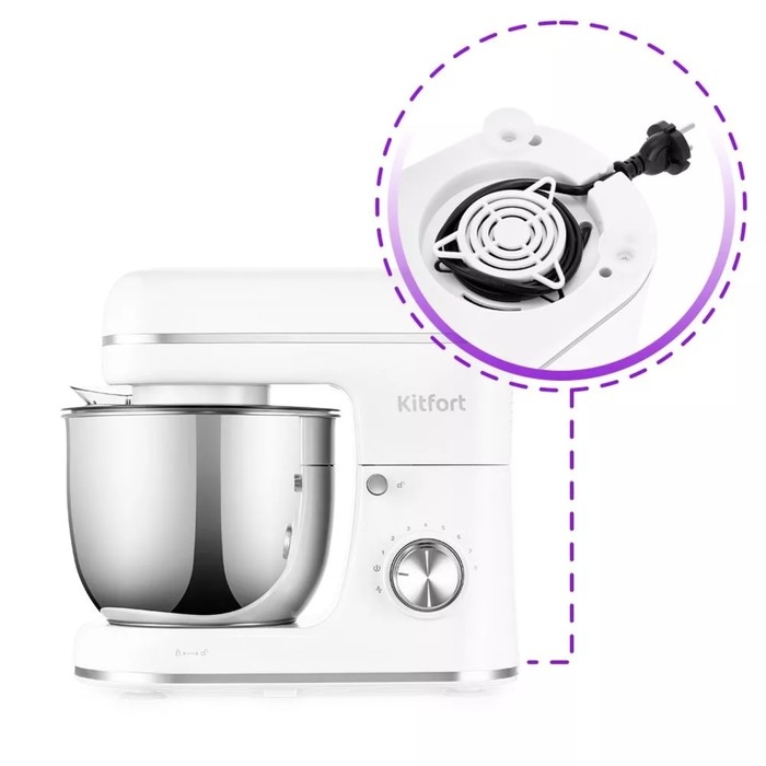 Миксер Kitfort КТ-3414, планетарный, 1300 Вт, 5 л, 8 скоростей, импульсный режим, белый