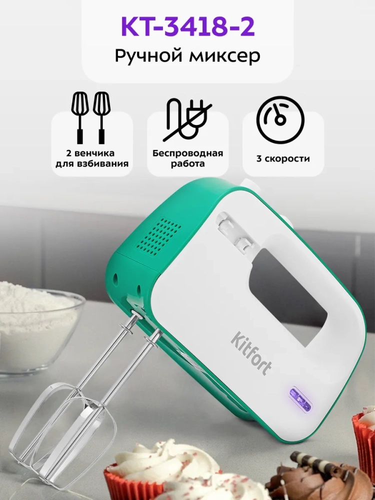 Миксер ручной беспроводной КТ-3418 - 50 Вт