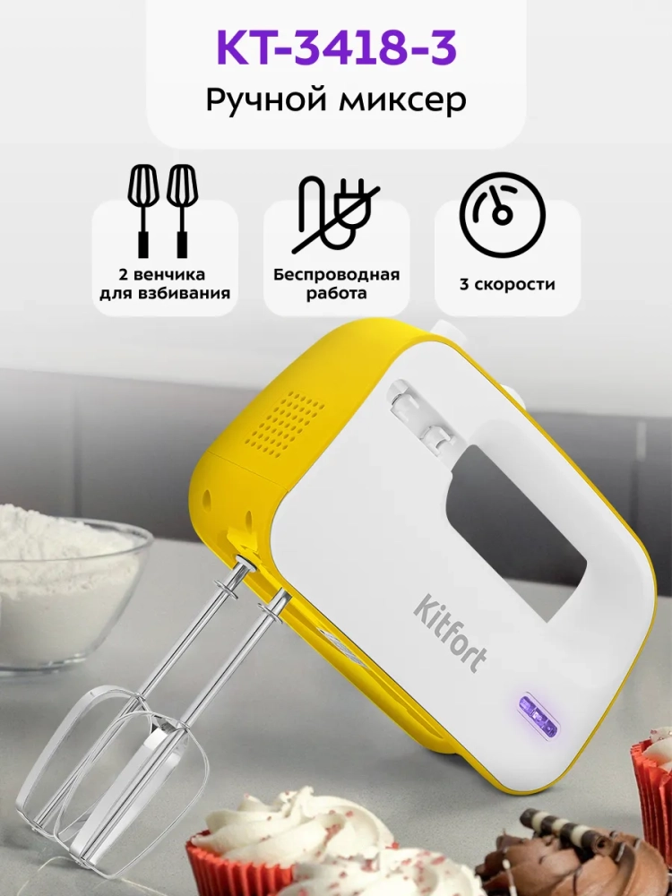 Миксер ручной беспроводной КТ-3418 - 50 Вт