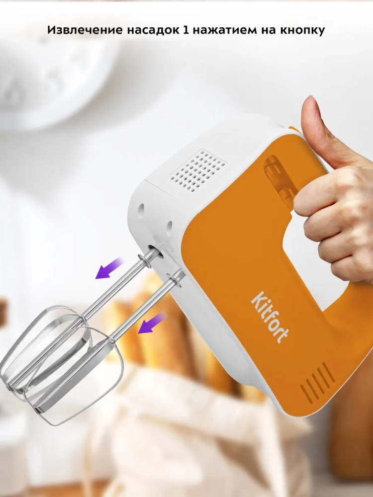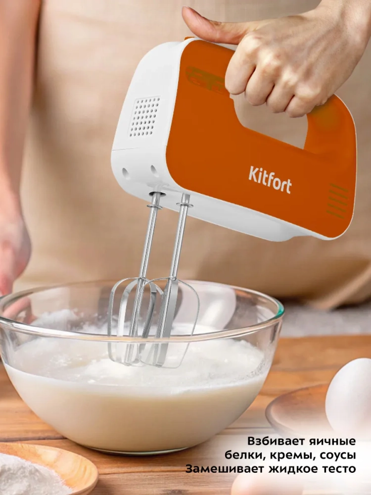 Ручной миксер Kitfort КТ-3417 поможет вам смешать ингредиенты, взбить яичный белок или сливки, приготовить соус, крем, мусс, замесить тесто для выпечки.
