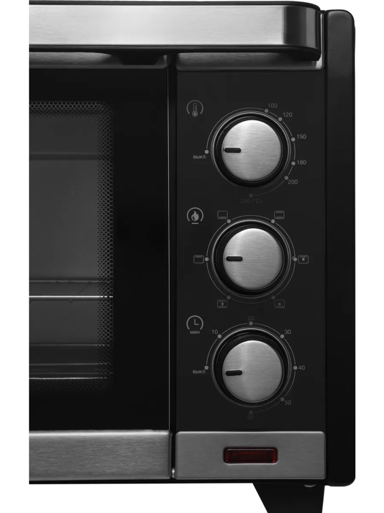 Модель продумана до мелочей и удобна в эксплуатации. Габариты 50,7 x 30,8 x 38,5 см делают мини-печь компактной, но в то же время достаточно вместительной. Нескользящие ножки обеспечивают устойчивость на любой кухонной поверхности.