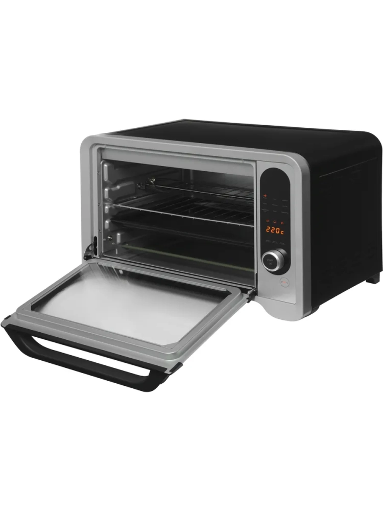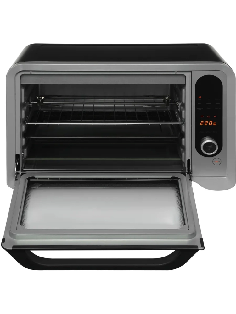 С объемом камеры 35 литров и мощностью 1600 Вт она легко справляется с широким спектром задач: от выпечки и жарки до запекания на вертеле и конвекционной готовки. Благодаря равномерному распределению горячего воздуха мини-печь обеспечивает стабильную температуру внутри камеры, что особенно для идеальной прожарки мяса и равномерного поднятия теста.