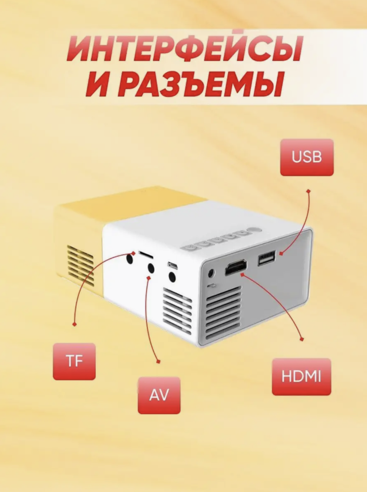 Мультимедийный плеер проектор с яркостью 300-600 люмен и контрастностью 800:1. Поддерживает звуковой кодек AAC или MPEG. Позволяет наслаждаться высококачественным изображением и видео дома, на даче или в офисе. Имеет выходы microUSB, USB и HDMI. Рекомендуемое расстояние от проектора до стены 1.5-2.5 метра. Встроенный динамик на 1В обеспечивает звуковое сопровождение без использования дополнительных колонок. Можно установить таймер включения и выключения. Возможность установки на треногу. Регулируемый объектив. Мини проектор подходит для работы и отдыха и передачи изображения на бумажный экран, стену или потолок. Изображение не излучает свет, что безопасно для глаз и идеально для просмотра мультфильмов. Подходит для презентаций в офисе. Создает четкую картинку без помех, идеален для просмотра мультиков и фильмов. Может воспроизводить видео с флешки, карты памяти или ноутбука. Для экрана подойдет белая стена, потолок или простынь. Можно использовать в офисе для вывода рабочих графиков и таблиц на большой экран. Проектор со скидкой, подойдет для просмотра карт звездного неба. Можно использовать при выключенном свете. Маленький и стильный дизайн проектора сочетается с интерьером. Многофункциональный и прост в использовании.