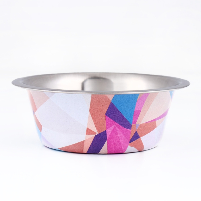Изготовленная из нержавеющей стали, эта миска отличается долговечностью и легкостью ухода. Разноцветный дизайн с узором осколки привнесет яркие краски в жизнь вашего питомца, делая каждое кормление еще более радостным.