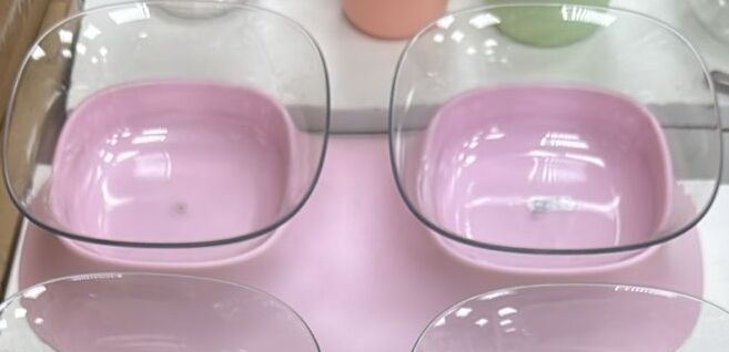 Миска двойная на подставке розовая