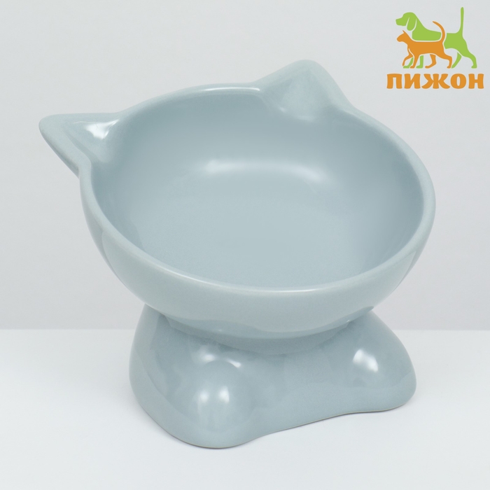 Миска керамическая "Киса" на подставке-лапках 200 мл 13 х 12 х 8 см, серая