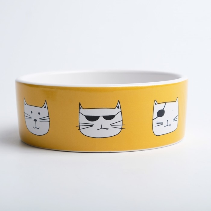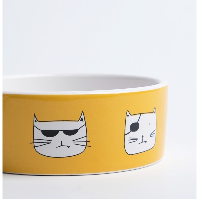 Миска керамическая "Опасные коты" 230 мл 12,5 x 4,5 cм, бело-оранжевая