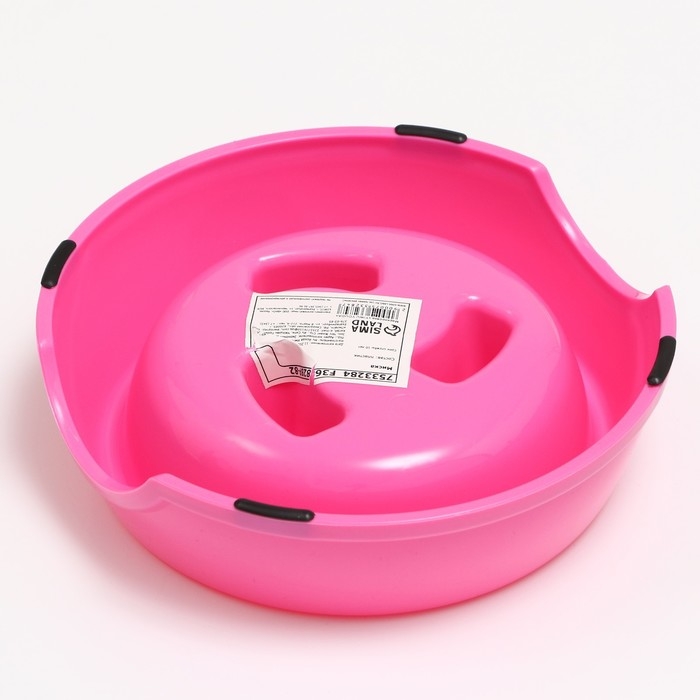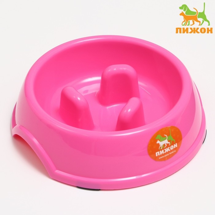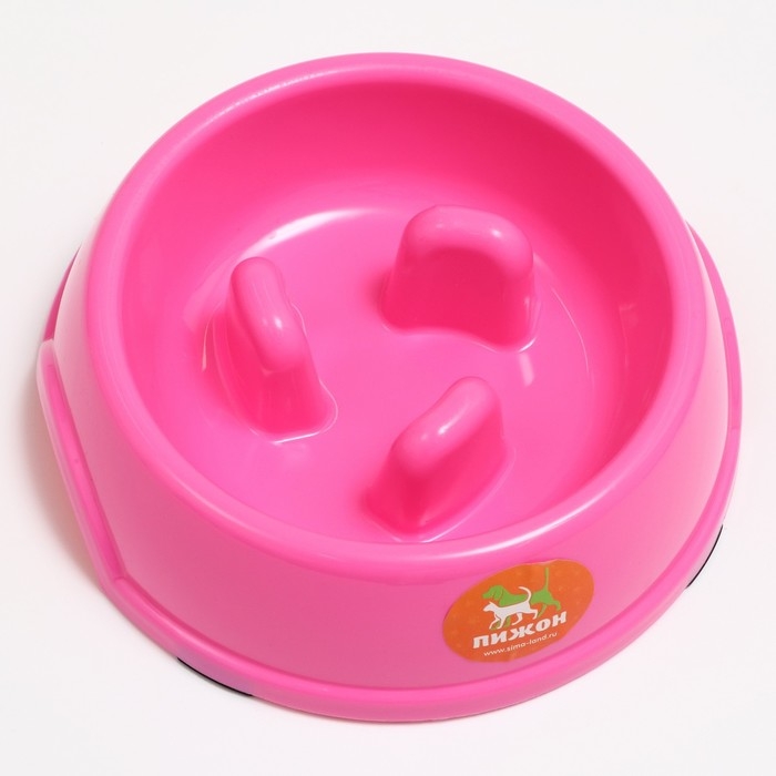 Миска пластиковая медленное кормление18 х 18,5 х 5,5 см, розовая