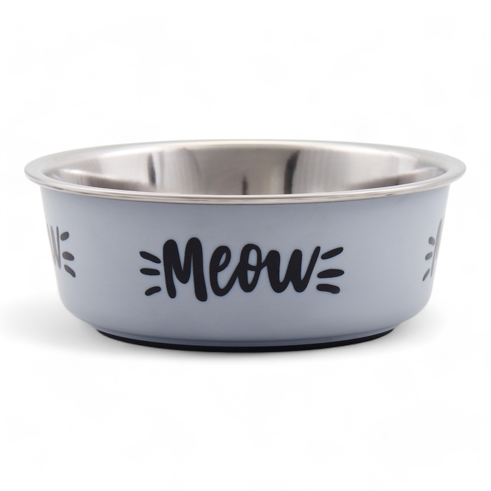Миска с силиконовым основанием "Мяу", серая, 300 мл